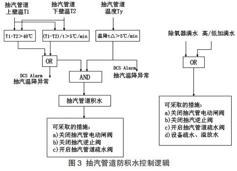 對于抽氣管道的積水情況, 仍采用上下壁溫差法自動檢測,控制邏輯與策略如圖 3 所示。