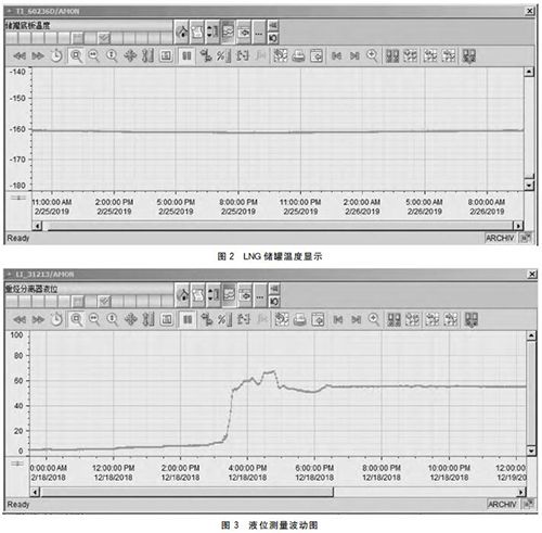 然后利用多孔法蘭(結(jié)合LNG項目的實際情況來選擇法蘭的孔數(shù)以及尺寸大小),將其接到LNG罐頂?shù)臏囟茸兯推鹘泳€箱內(nèi)部,再使用多芯電纜把4~20mA信號發(fā)送到控制系統(tǒng)。現(xiàn)場安裝RTD熱電阻建議選用雙支,方便以后檢修更換。圖2為LNG儲罐溫度顯示。