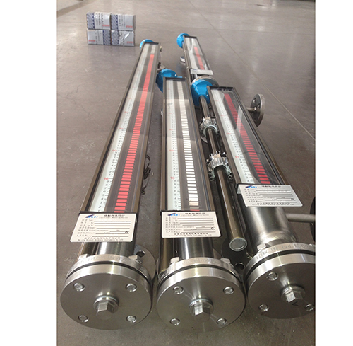 在管體的另一側可按用戶需要加裝電遠傳變送器,將液位高度轉換成標準電流信號輸出,以供液位信號輸出,以供液位信號遠傳至二次儀表進行指示控制與檢測。