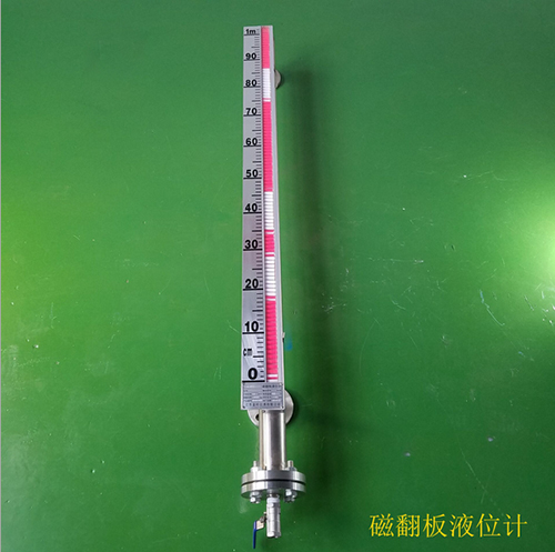 液位計根據浮力原理,浮子在測量管內隨液位的升降而上下移動,浮子內的永久磁鋼通過磁耦合作用,驅動紅、白色翻柱翻轉180’液位上升時,翻柱由白色轉為紅色,下降時,翻柱由紅色轉為白色,從而實現液位的指示。