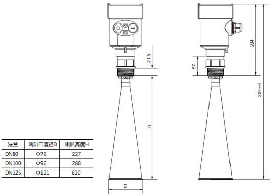 水箱雷達(dá)液位計結(jié)構(gòu)尺寸(單位:mm)