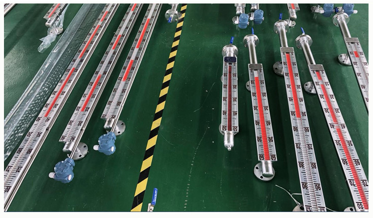 在管體的另一側可按用戶需要加裝電遠傳變送器,將液位高度轉換成標準電流信號輸出,以供液位信號輸出,以供液位信號遠傳至二次儀表進行指示控制與檢測。